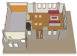 設計段階の家の概観パース。ポーチやバルコニーを含めて総床面積161uになってしまった。大きなバルコニーとビルトインガレージ(ビーチフロントの為、塩害を警戒)のため だ。構造はRC。木造は木の値段が高いのと台風による強風に耐えられそうも無いため敬遠。鉄筋コンクリートは作ったことが無いためゼロからの出発だ。こちらではRC構造の建物は固定資産税の対象で、木造は課税されない そうだ。 |