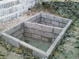 まずはトイレの浄化槽から造り始めた。 2層式になっており、かなり長く使えるだろう。浄化槽は土地の一番低いところに作った。井戸水に逆流しないようにするためだ。そのため家のトイレ(もちろん水洗)からは30mほど離れてしまう。勾配があるので大丈夫だとは思うが、詰まるのが心配だ。詰まり対策用のマスも途中に作った。 |