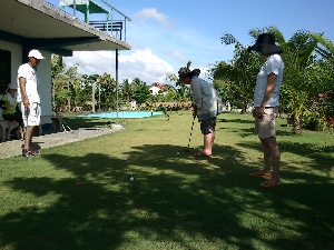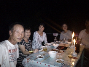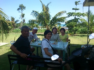 そして明るいうちから宴会が始まりました。ビールはサンミゲールのレッドホース。アルコール度数が7%もあるのでダウンした人も。 |